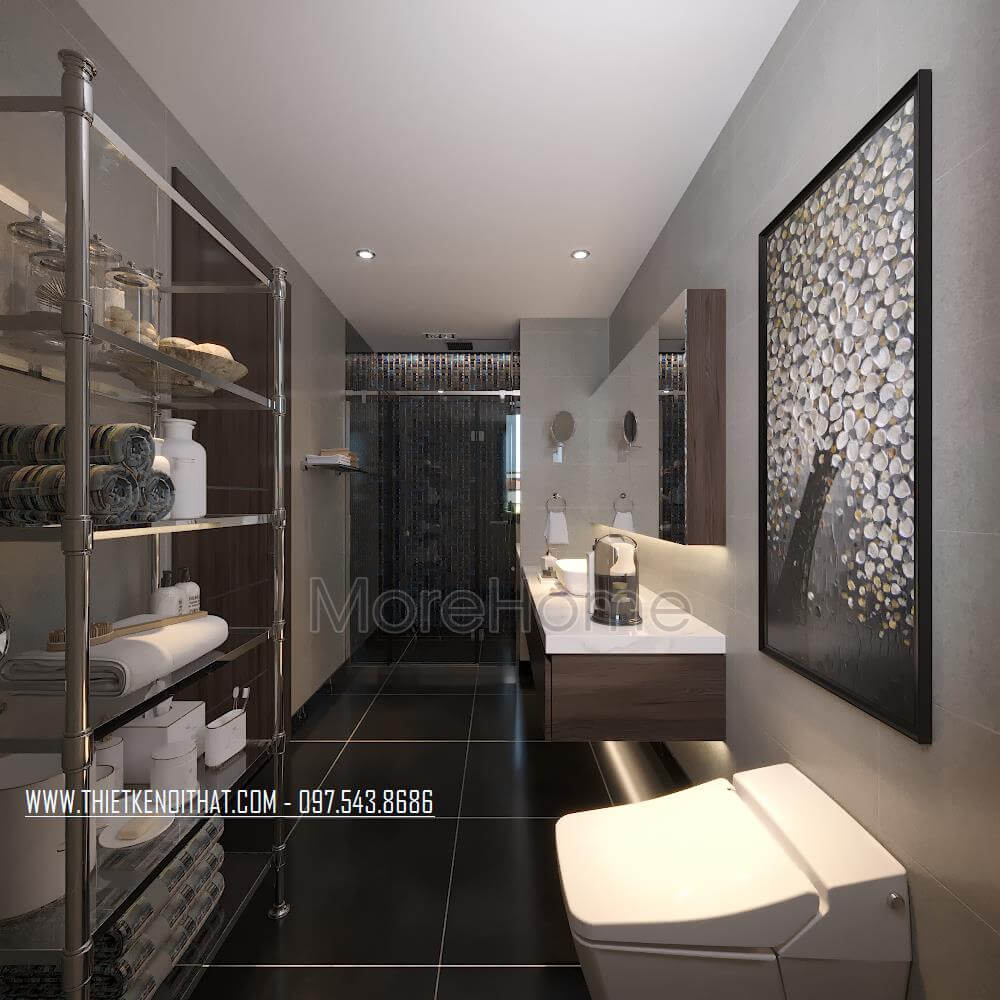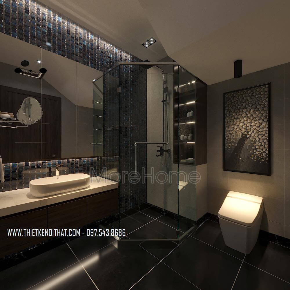 Hạng mục thi công: Sàn nhà, ốp tường, bàn lavabo