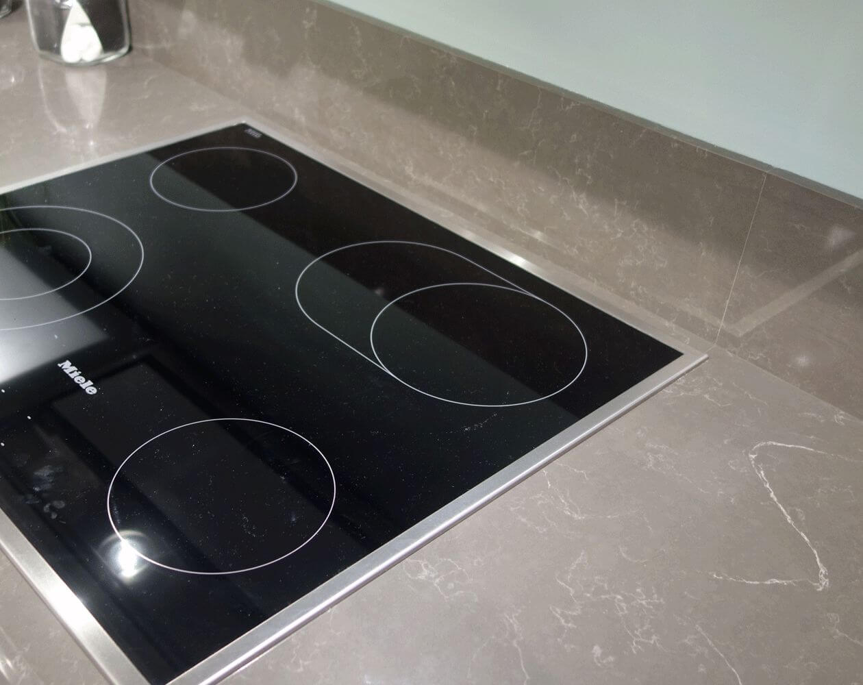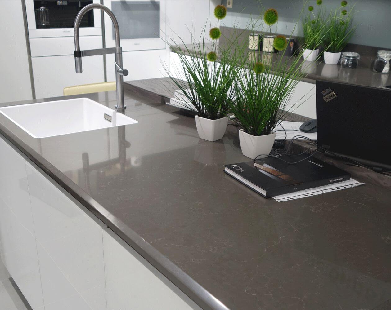 Đá nhân tạo ứng dụng hạng mục thi công: Làm mặt bàn bếp, đá làm quầy lễ tân, ốp bếp, ốp bàn lavabo...