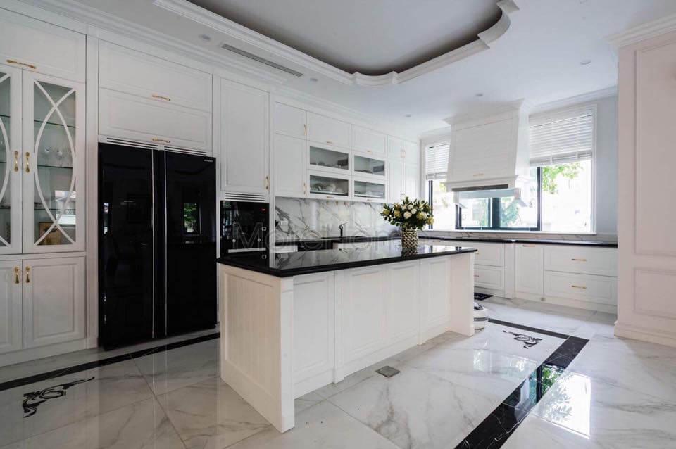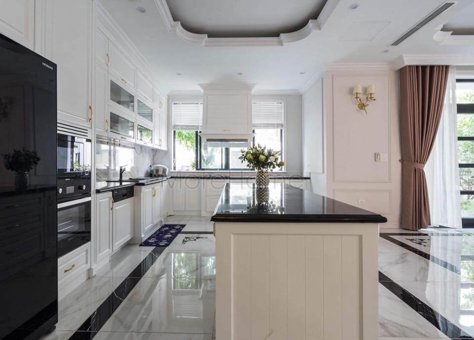 Hạng mục thi công: Bàn đảo bếp, ốp bếp, ốp tường, vách tivi, sàn nhà, khu nhà tắm, cầu thang..