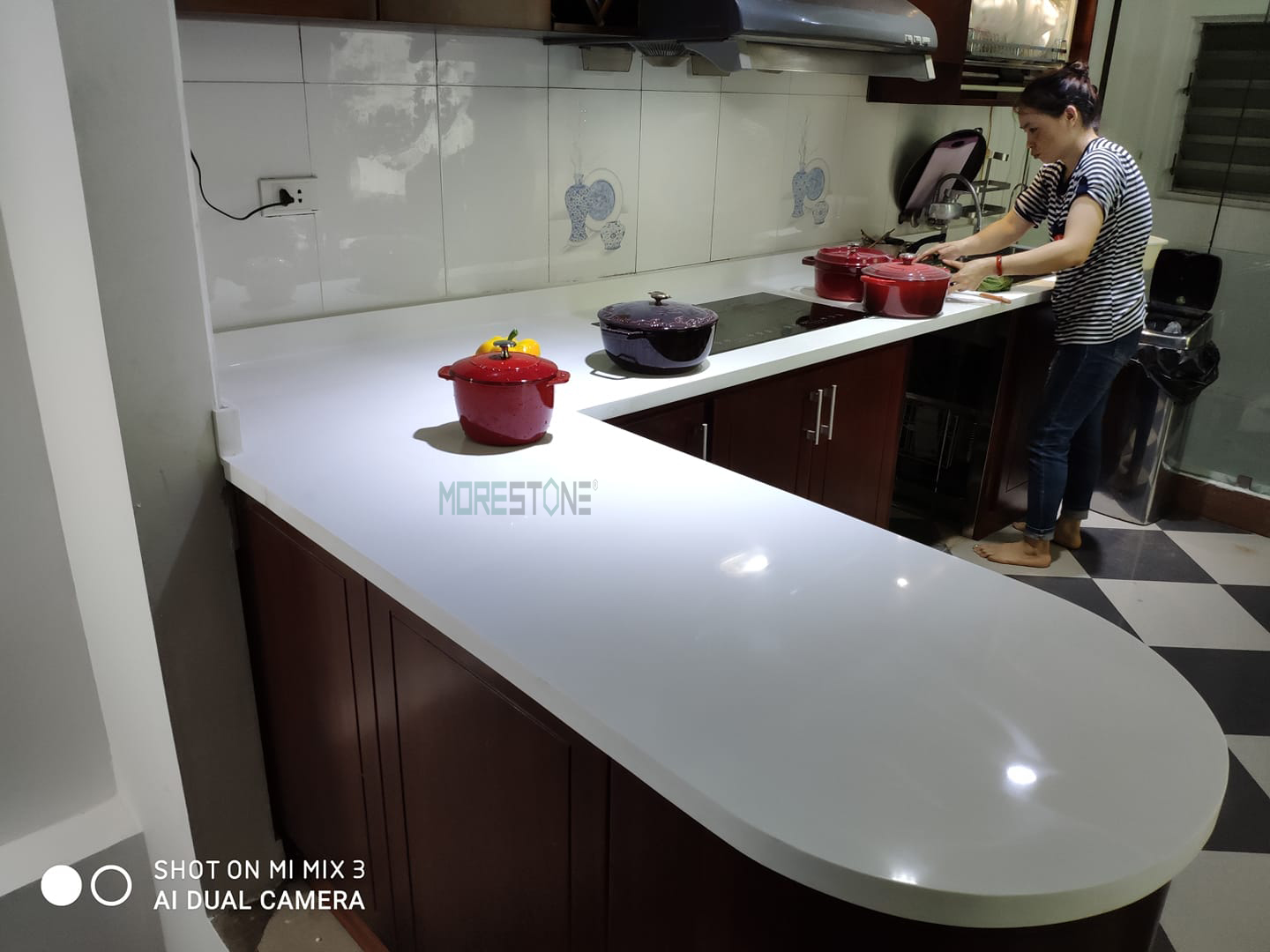 Công trình thi công thực tế, Thi công đá nhân tạo solid surface, Đá ốp bàn đảo, Đá ốp bếp
