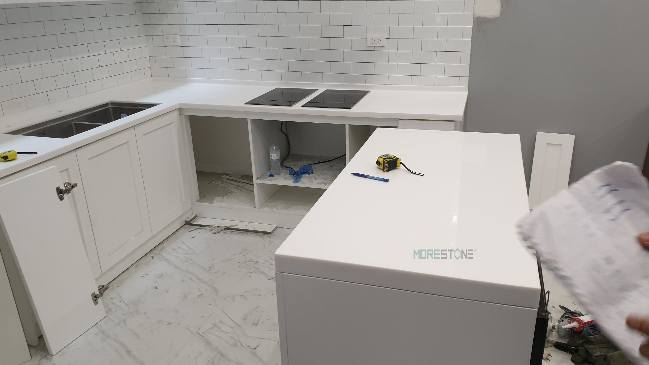 Công trình thi công thực tế, Thi công đá nhân tạo solid surface, Đá ốp bàn đảo, Đá ốp bếp