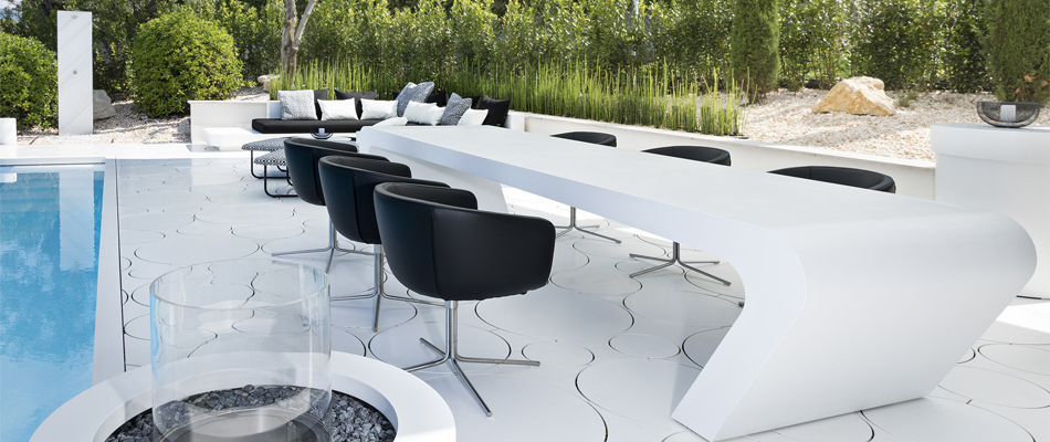 Nhờ khả năng chống tia UV đá nhân tạo được ưu tiên sử dụng cho khu vực ngoài trời