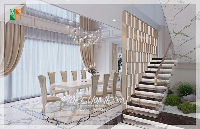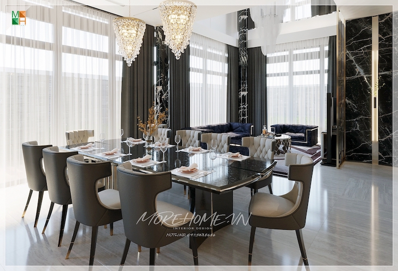 Sang trọng và đẳng cấp: Bàn ăn chất liệu đá mang lại vẻ đẹp sang trọng, đẳng cấp và tạo điểm nhấn nổi bật cho không gian phòng ăn.
