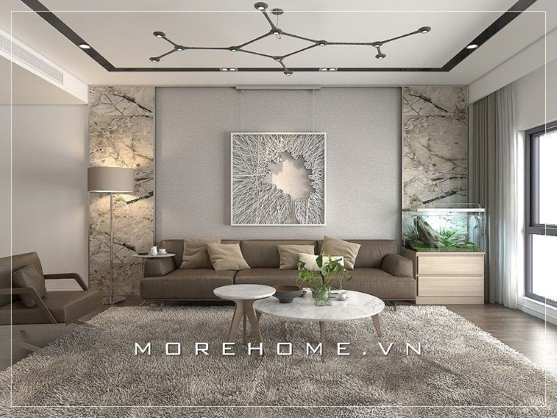 Sự kết hợp tài tình giữa bàn trà và bộ sofa giúp phòng khách nổi bật hơn