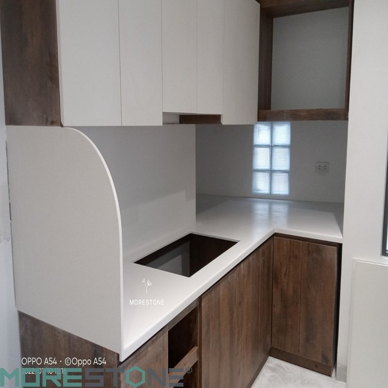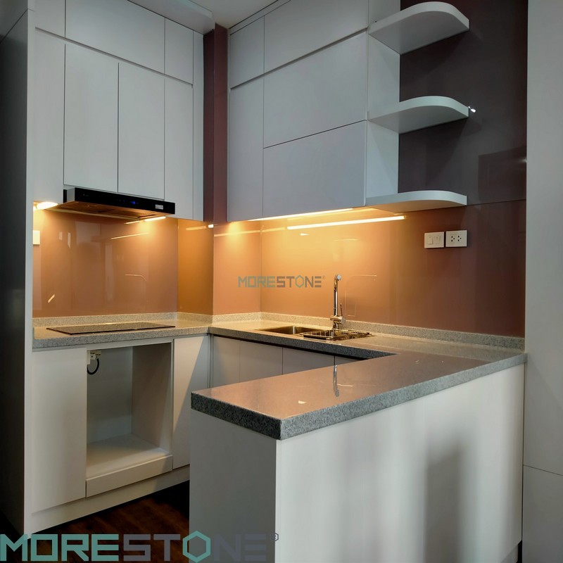 Riêng với đá bếp, với nhiều năm kinh nghiệm và là chuyên gia trong nghề, Morestone khuyên bạn nên lựa chọn các dòng đá nhân tạo chất lượng, với công nghệ sản xuất bề mặt chống ngấm ố hiện tại, đảm bảo chất lượng của sản phẩm.