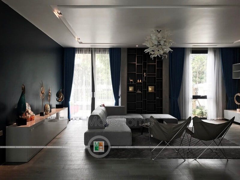 Công trình thi công nội thất phòng khách hiện đại tại biệt thự Hà Tĩnh đã được hoàn thành.