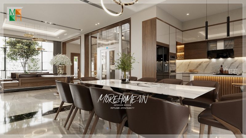 Morehome đã hoàn thành việc thi công nội thất phòng ăn cho biệt thự hiện đại ở Hà Tĩnh.