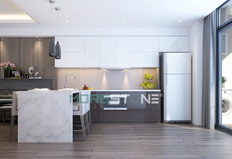 Đá granite, với vẻ đẹp tự nhiên và độ bền cao, mang lại sự sang trọng và tinh tế cho bề mặt bếp. Trong khi đó, đá marble lại thu hút bởi các vân đá độc đáo và màu sắc đa dạng, tạo điểm nhấn nổi bật cho căn bếp. Tuy nhiên, marble có thể kém bền hơn so với granite khi tiếp xúc với axit từ thực phẩm, vì vậy việc lựa chọn loại đá phù hợp cần dựa vào nhu cầu sử dụng thực tế.